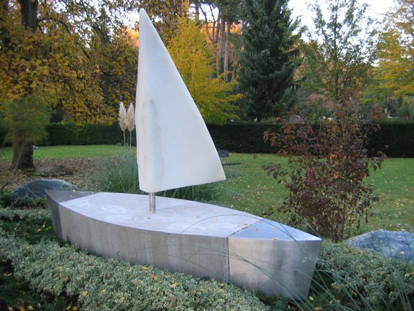 Ausstellung "Aspekte" auf dem Karlsruher Hauptfriedhof mit "Segelboot", Bildhauer: Thomas Brunner.